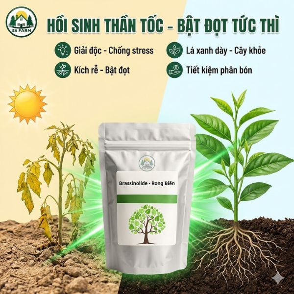 Trong sản xuất nông nghiệp hiện đại, cây trồng thường xuyên gặp stress sinh lý do thời tiết, dư phân – thuốc, ngập úng, sương muối hoặc sau thu hoạch. Combo Brassinolide Rong Biển 3SFARM là giải pháp kích hoạt – phục hồi – nuôi dưỡng toàn diện, giúp cây khỏe nhanh nhưng vẫn bền vững.